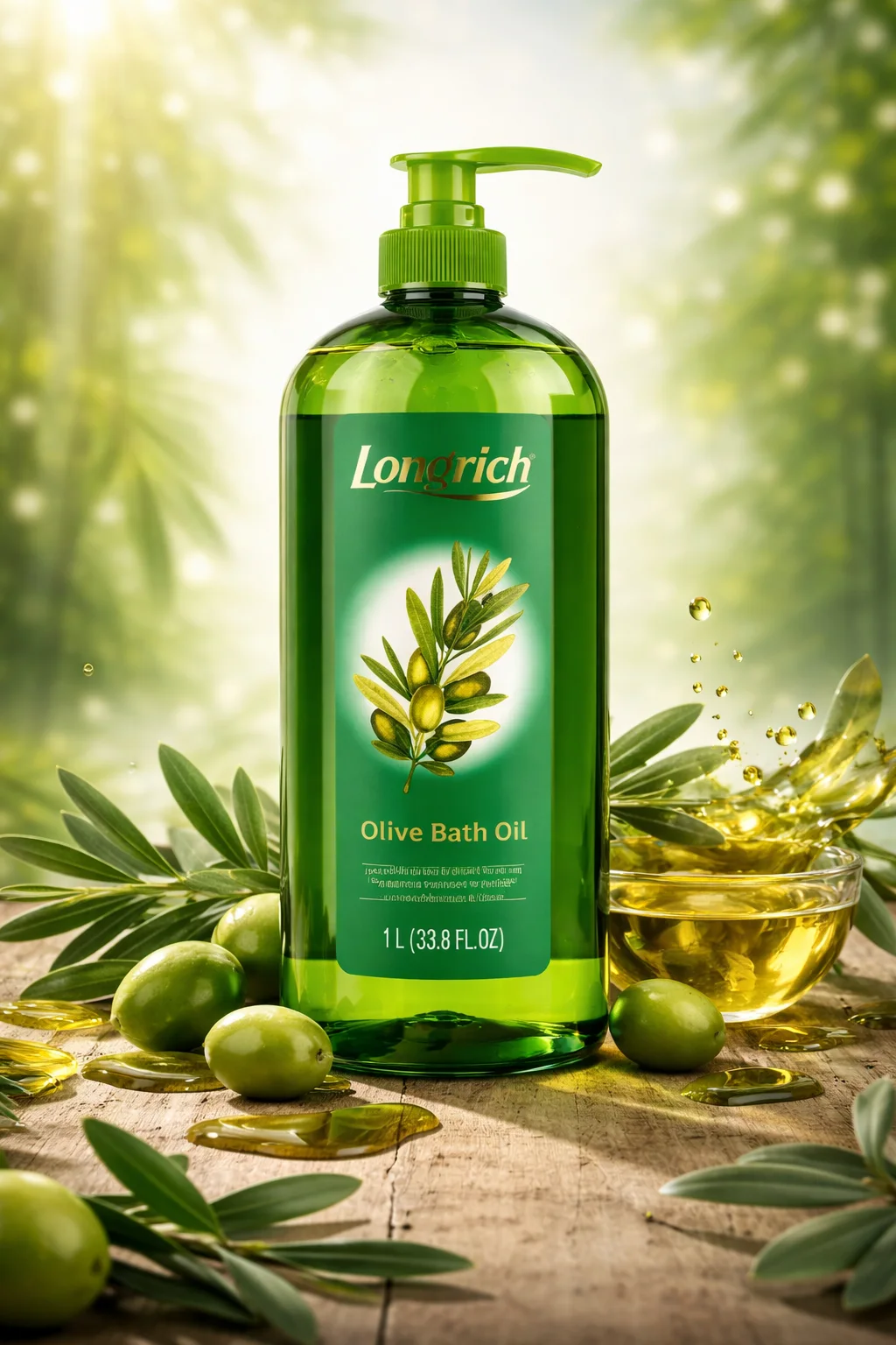 Huile de Bain à l’Olive Longrich – Pureté, Détente & Soin Naturel